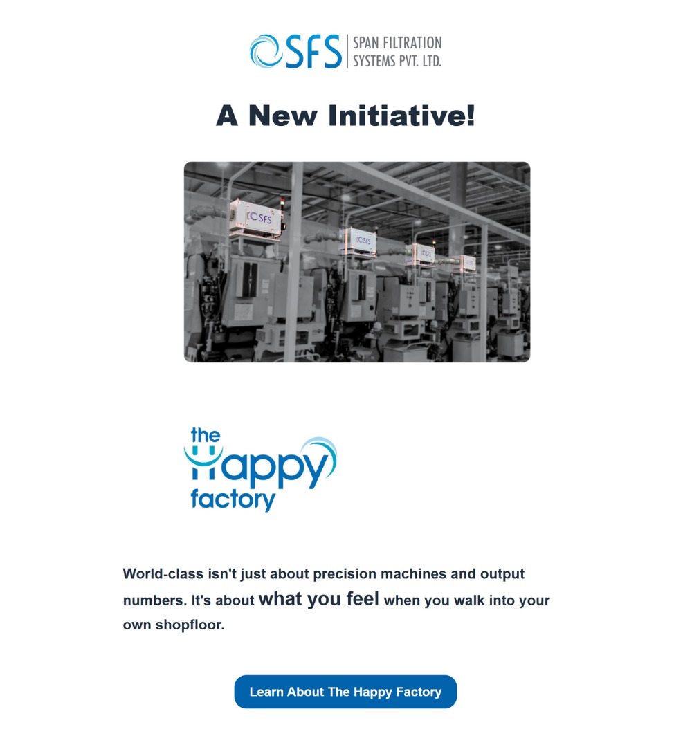 We launched a campaign on how SFS helps to transform customer's facilities into 'The Happy Factory' - a place where air is cleaner, people are happier, and performance naturally improves.